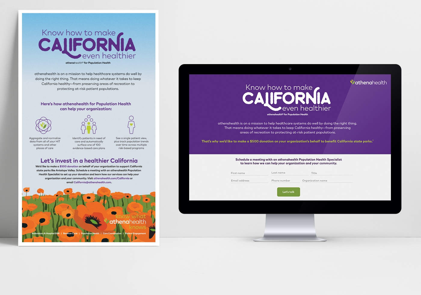 California has a history of preserving vulnerable lands and ecosystems. The same holds true for protecting the health of vulnerable Californians. So we made an altruistic appeal to healthcare leaders, while showcasing our unique ability to keep their state healthy through athenahealth for Population Health.